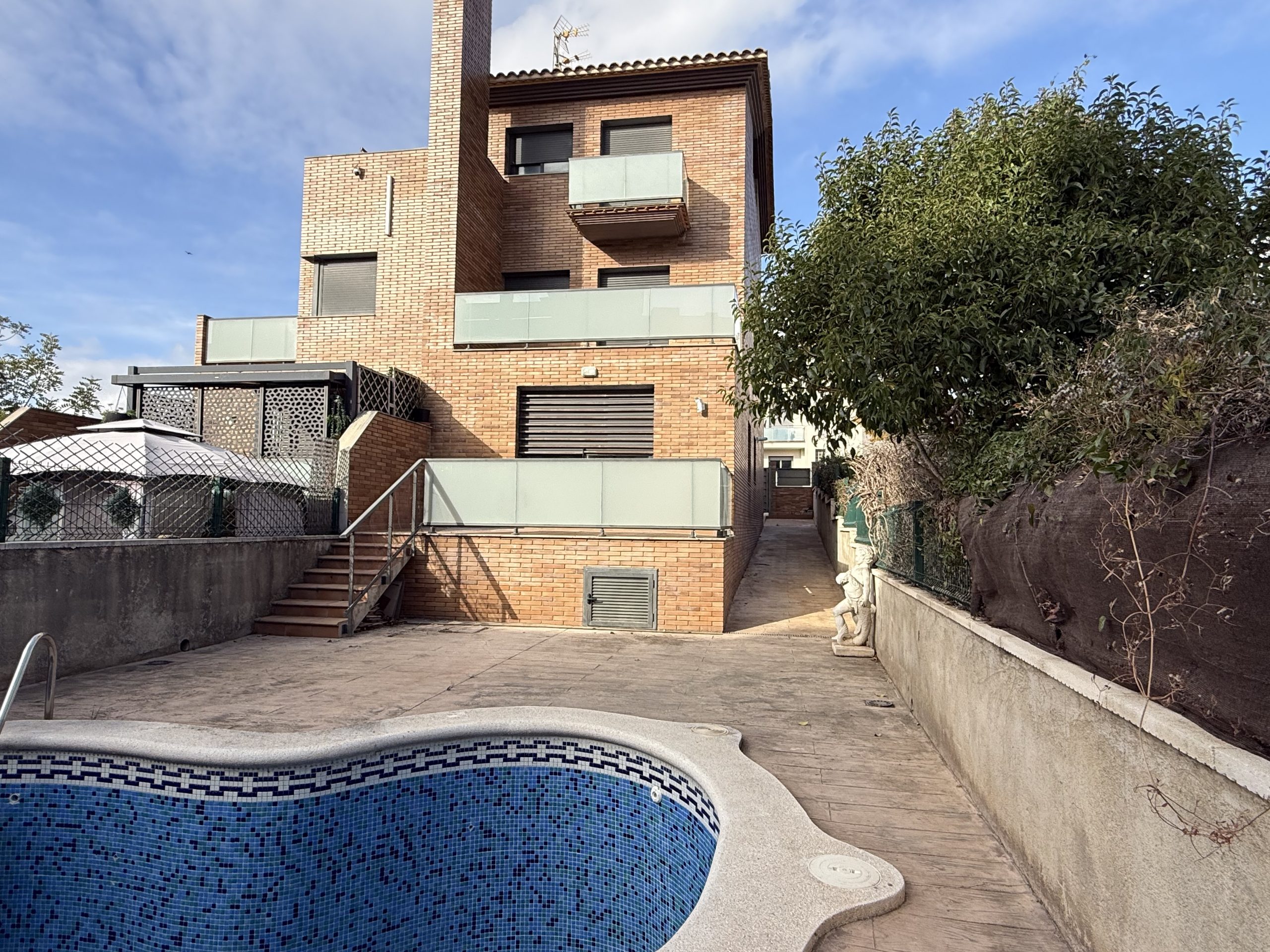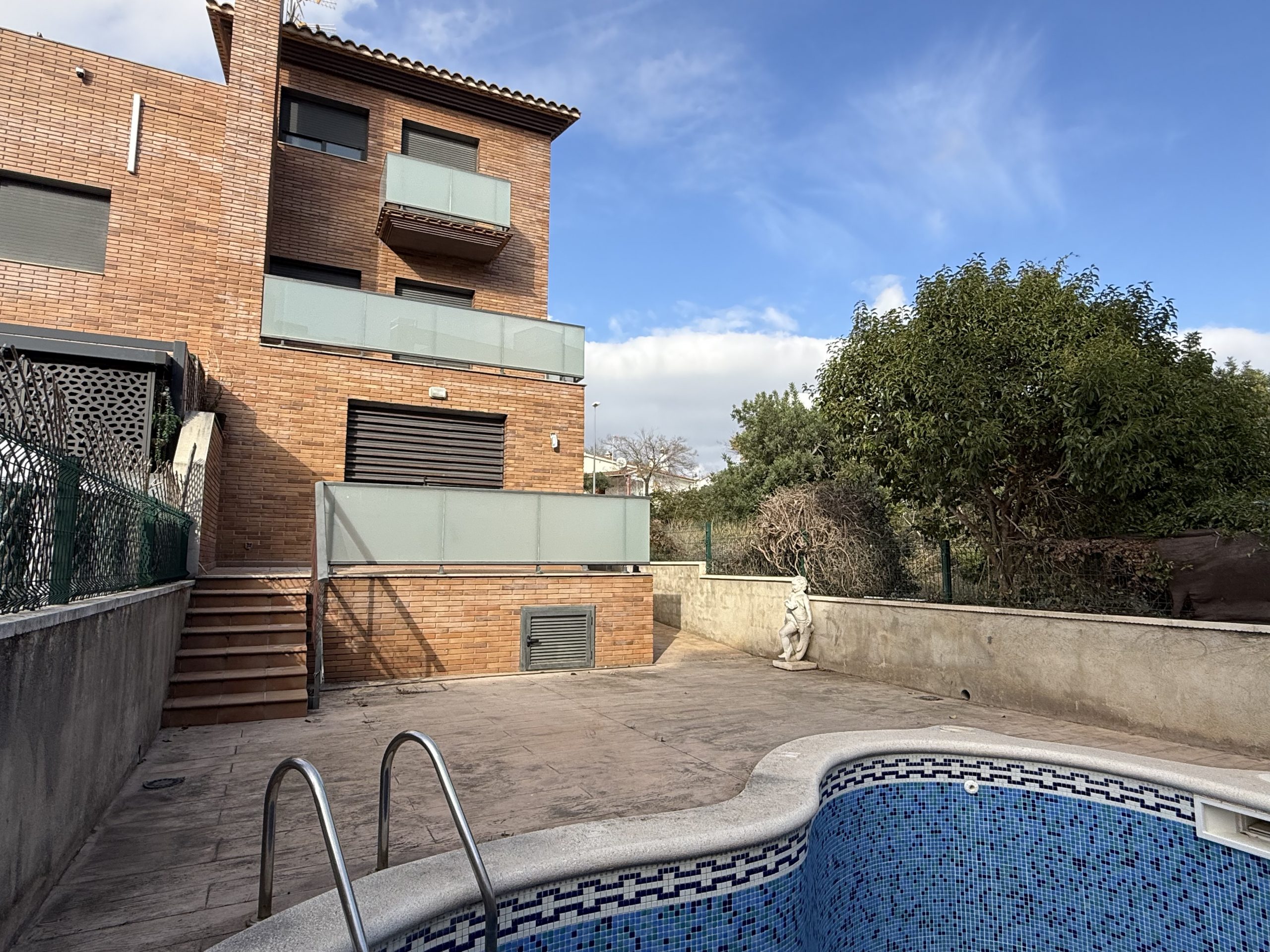 En el exterior, la vivienda ofrece diferentes niveles de terrazas, un jardín de bajo mantenimiento y una piscina privada con zona solárium. El entorno es residencial, seguro y bien comunicado, con proximidad a servicios, zonas verdes, colegios y accesos rápidos hacia Barcelona.