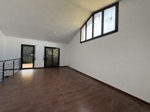 La segunda planta está destinada íntegramente a la master suite, que incluye un dormitorio doble de grandes dimensiones, un baño privado y una terraza amplia con vistas despejadas. Este espacio puede transformarse fácilmente en un pequeño estudio independiente, un despacho profesional, un área de descanso o una sala de ejercicio, según las necesidades del futuro propietario.